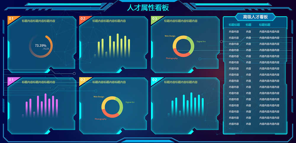 w2258-psd属性蓝色科技感大数据展示看板大屏ui设计模板源文件下载