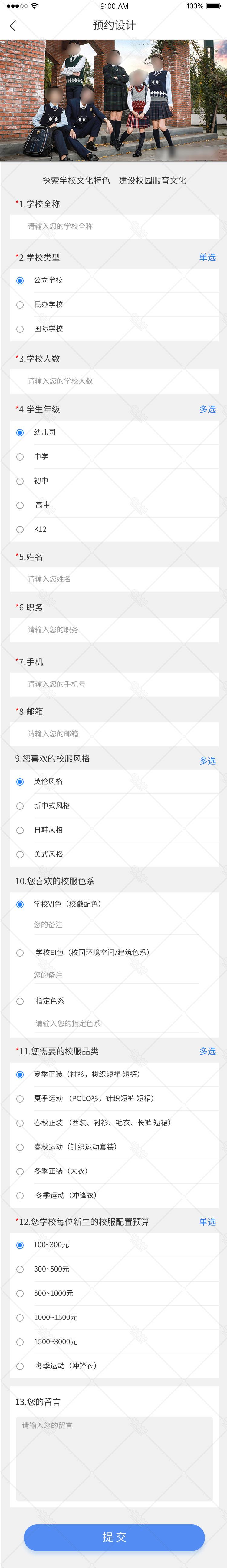 衣服 服饰 表单 预约 设计 问卷 需求 收集 蓝色 ui设计 psd 源文件 下载