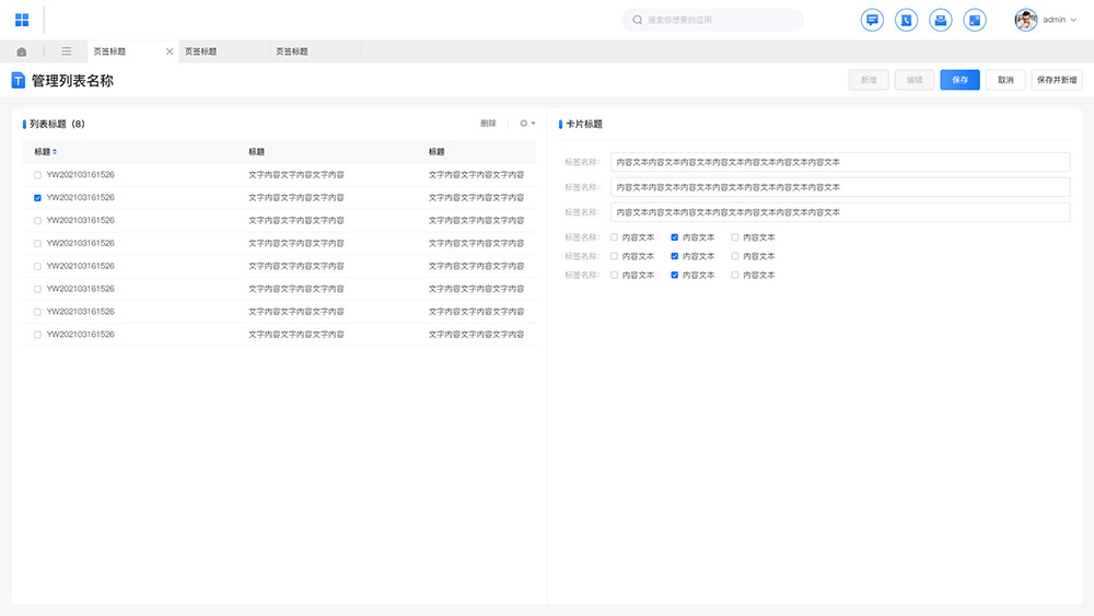 w2747-psd系统erp网站后台管理系统蓝色简洁大气干净极简左列右卡列表页