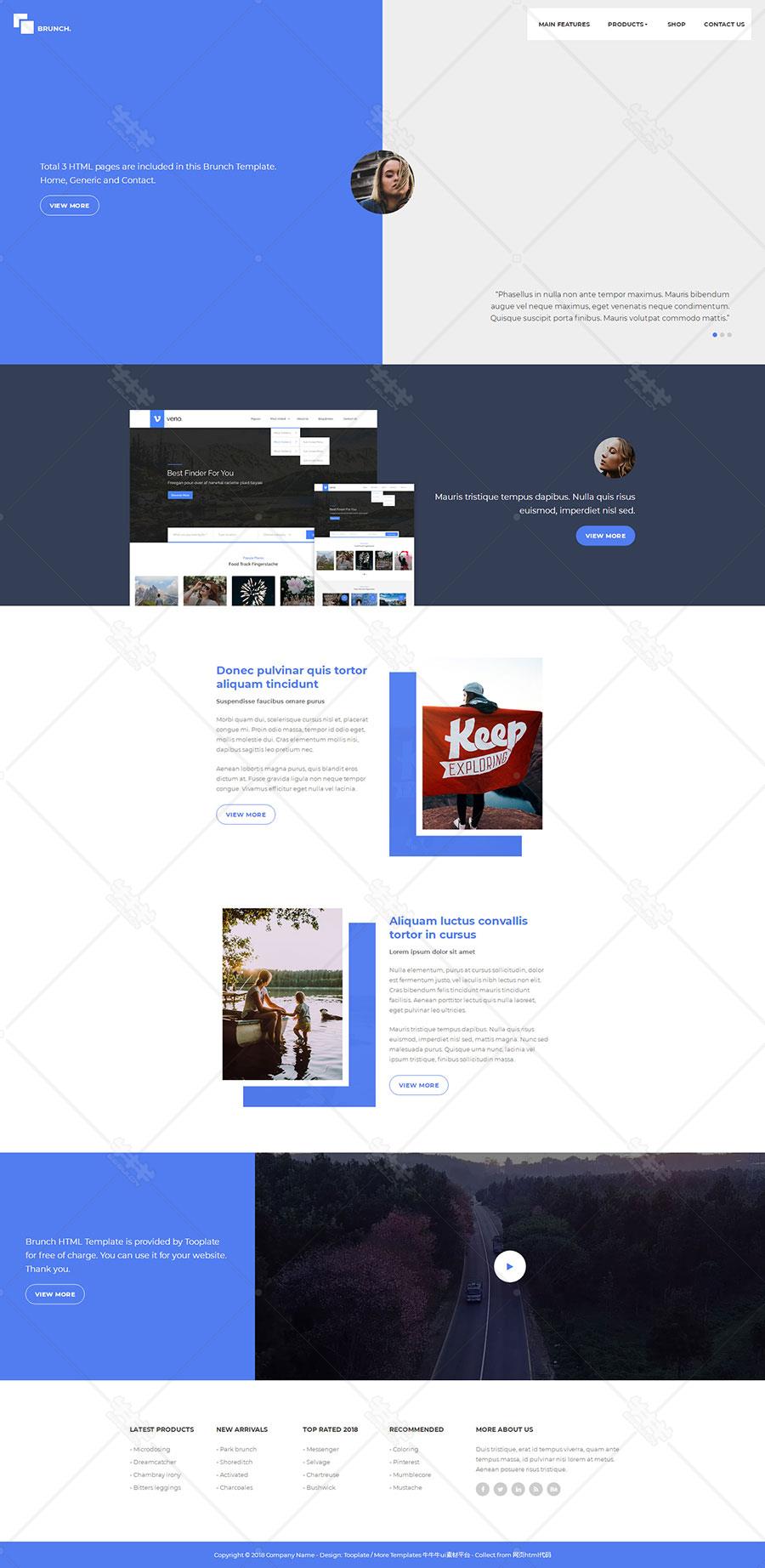 高端 创意 蓝色 html5 网页模板 左右50%