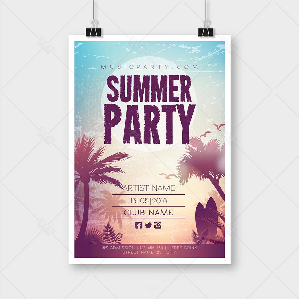 ai 矢量 电影 宣传 复古 夏季 热带 植物 海报 设计 模板 源文件 下载