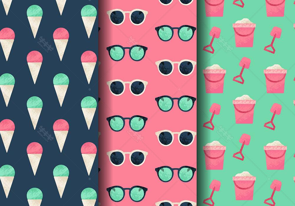 ai 夏季 海滩 背景 底纹 矢量 素材 甜筒 太阳镜 桶 铲