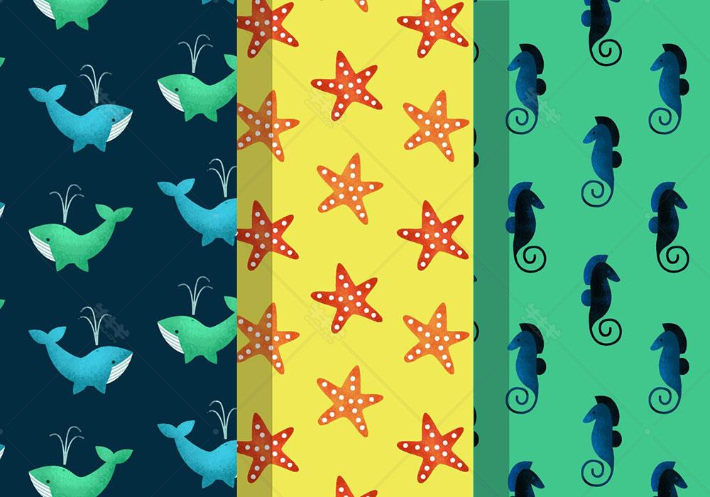 p120-AI矢量海洋生物可爱海豚海马海星背景底纹矢量素材