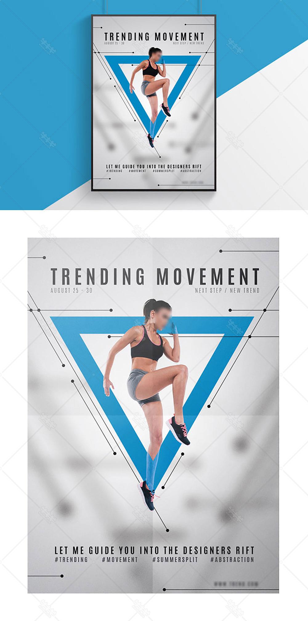 几何 简约 运动 健身 三角形 海报 psd 源文件 下载 蓝色