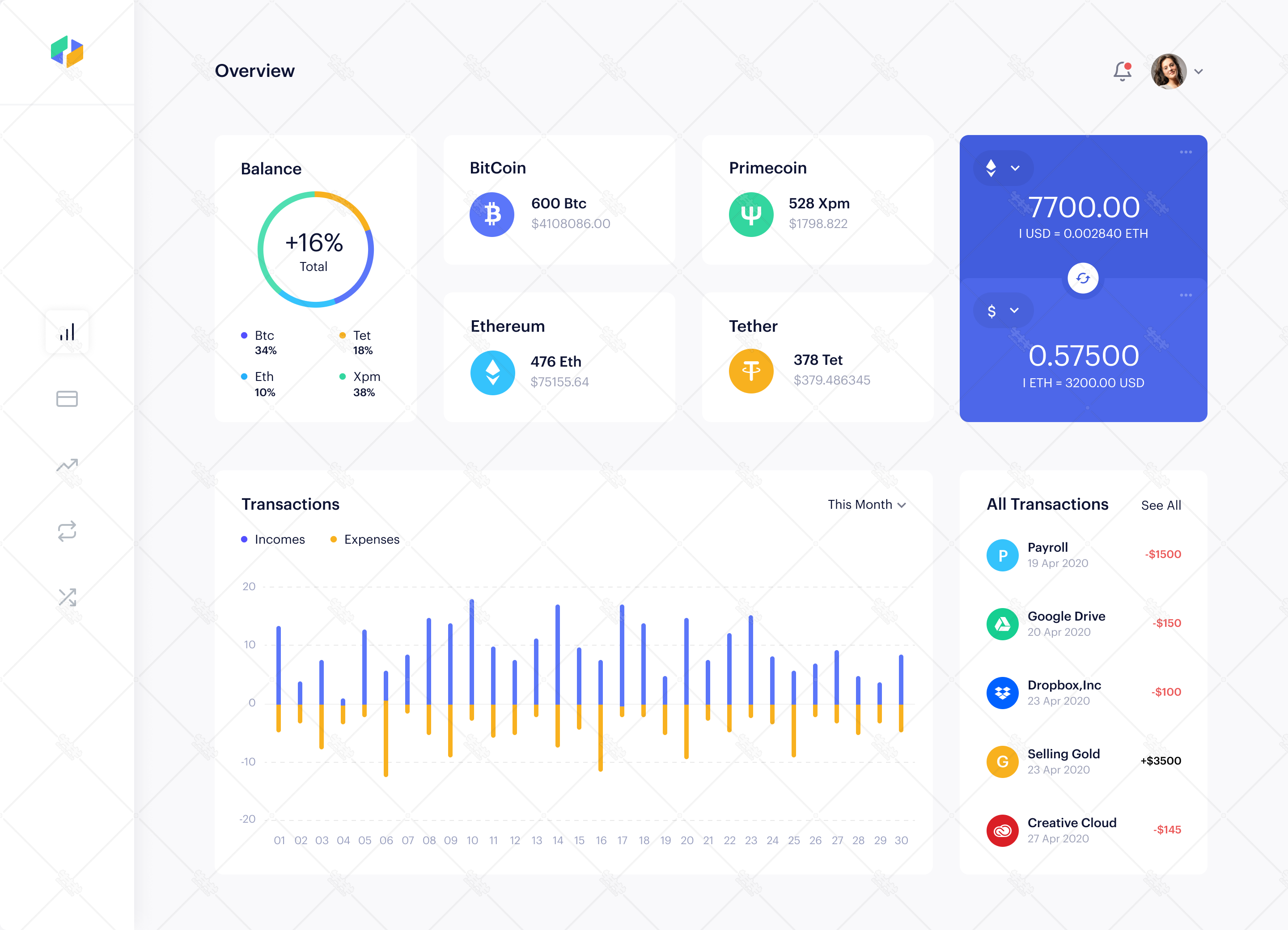 首页>网页ui>w337-fig后台管理数据展示钱包数字货币dashboard网页ui设计源文件下载
