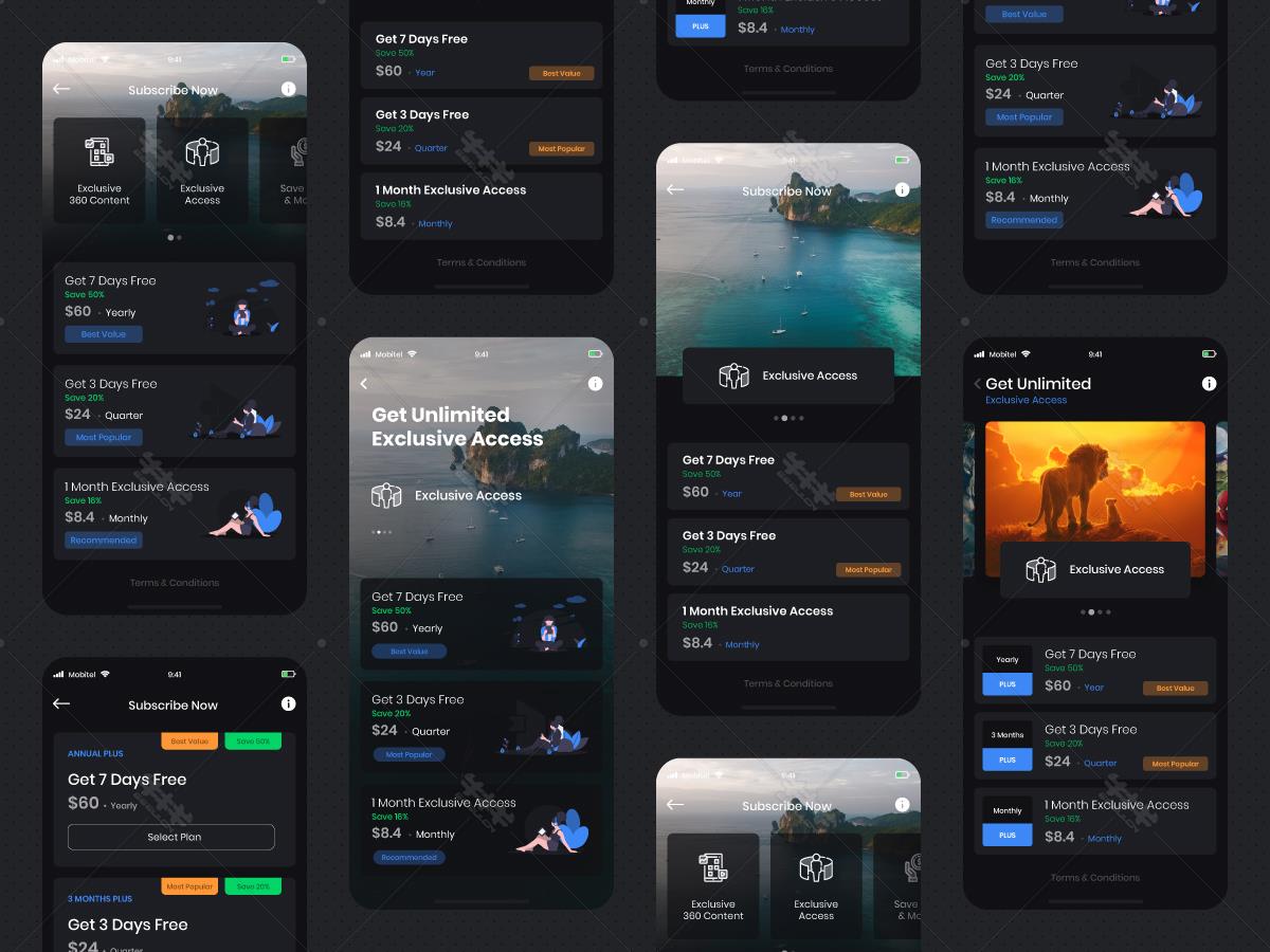 ai 首页 列表页 详情页 支付 选择 深色 暗色系 矢量 区块链 旅行 旅游 插画 酷炫 app 源文件 ui设计 模板 下载