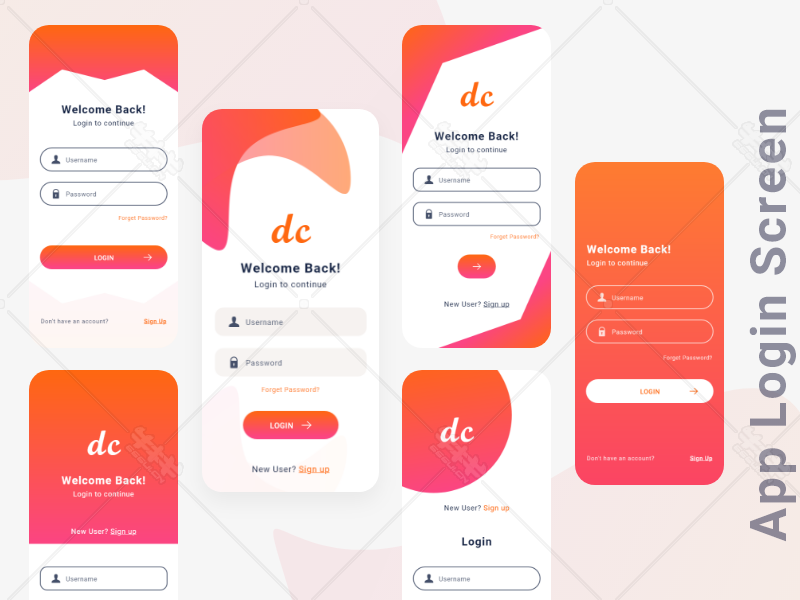 首页>移动ui>y366-xd橙色创意简洁登录注册多套风格样式