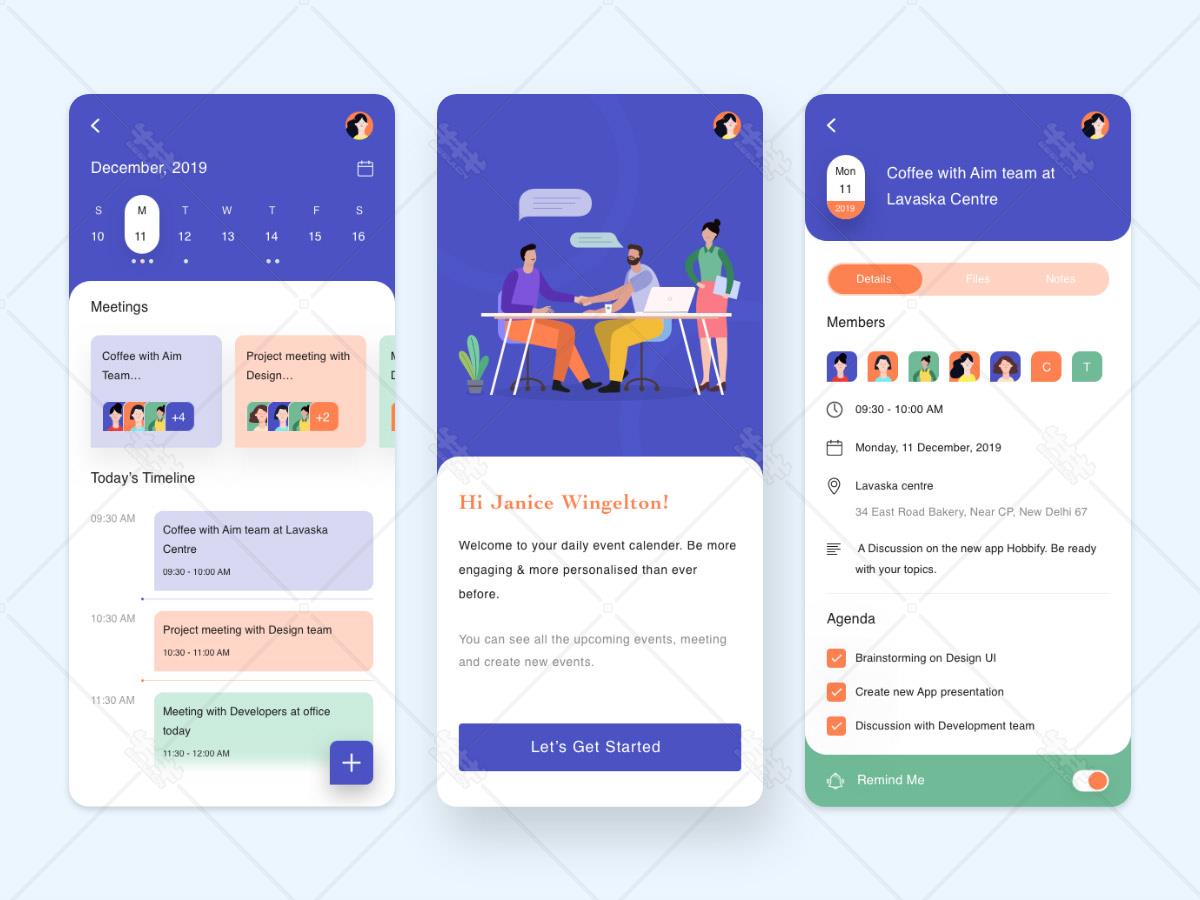sketch 在线 会议 oa 日期 行程 规划 安排 办公 插画 扁平 紫色 app设计 ui 模板 源文件 下载