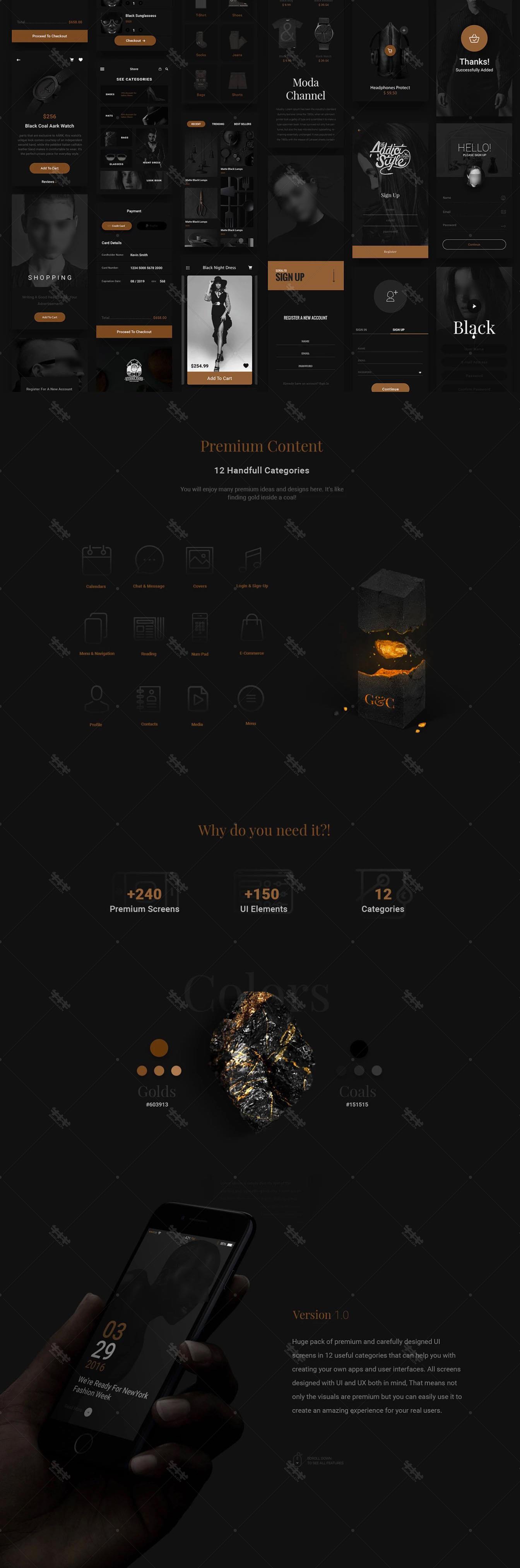 黑金 电商 app 设计 ui 模板 时尚 源文件 下载 全套 首页 登陆 注册 列表 详情 创意 个人 中心