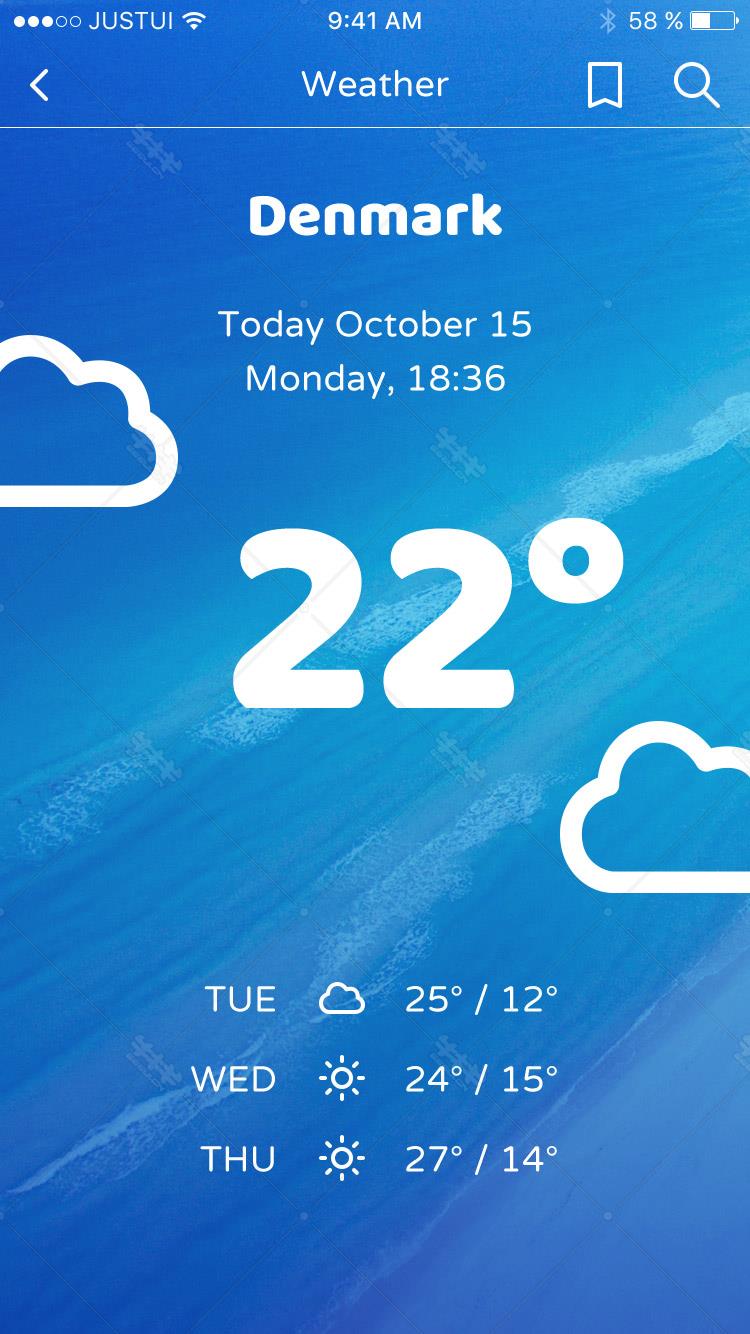 天气 预报 app 首页 蓝色 科技 大气 ui设计 psd 源文件 下载