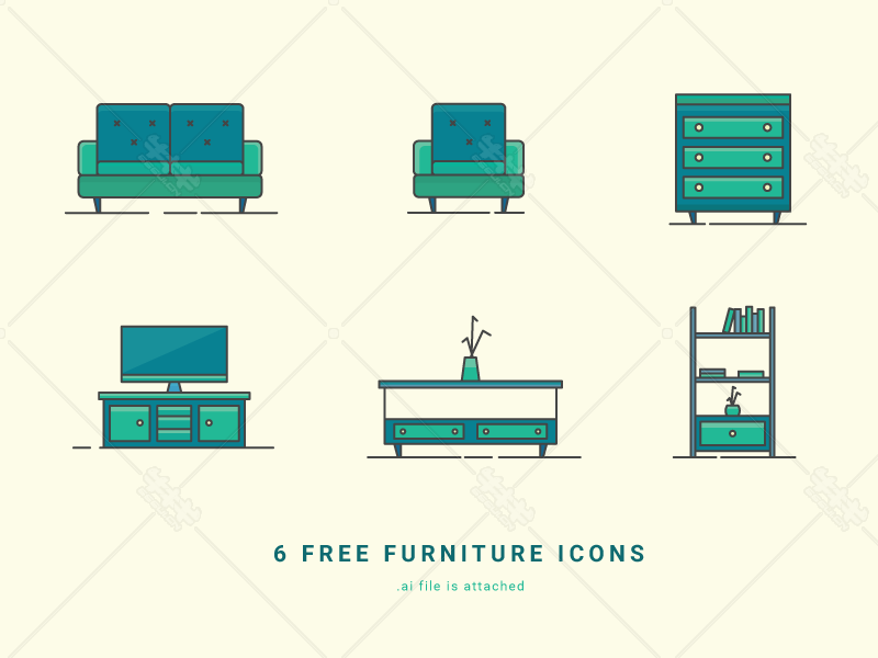 ai 矢量 mbe 创意 家居 线面 结合 icon 图标 绿色 单 双 人 沙发 柜子 书架 电视柜
