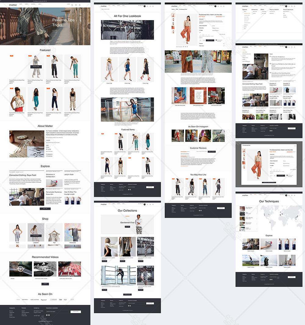 sketch 简约 服装 电商 网页 界面 首页 列表页 尺码 选择 菜单 详情页 联系 我们 全套 ui设计 模板 源文件 下载