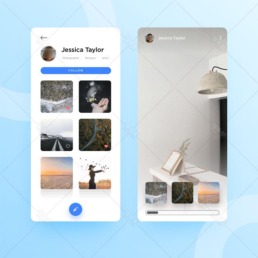 首页>移动ui>y513-xd简约爱好收藏列表页社交大气app页面ui设计源文件下载