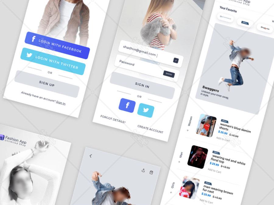 sketch 简约 时尚 电商 购物 app 界面 ui设计 首页 登录 注册 列表 详情