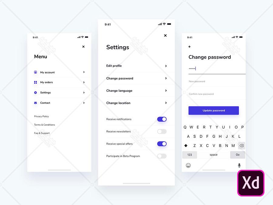 xd 登录 注册 菜单 设置 列表页 极简 ui设计 简洁 大气