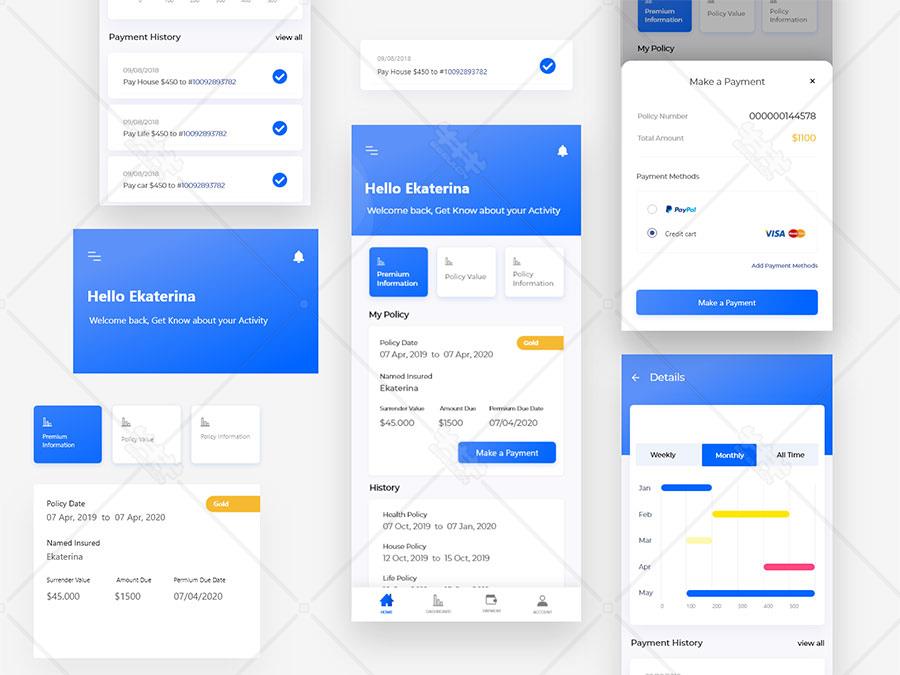 y100-蓝色简约APP个人中心UI设计移动端手机端应用ui设计psd xd源文件下载
