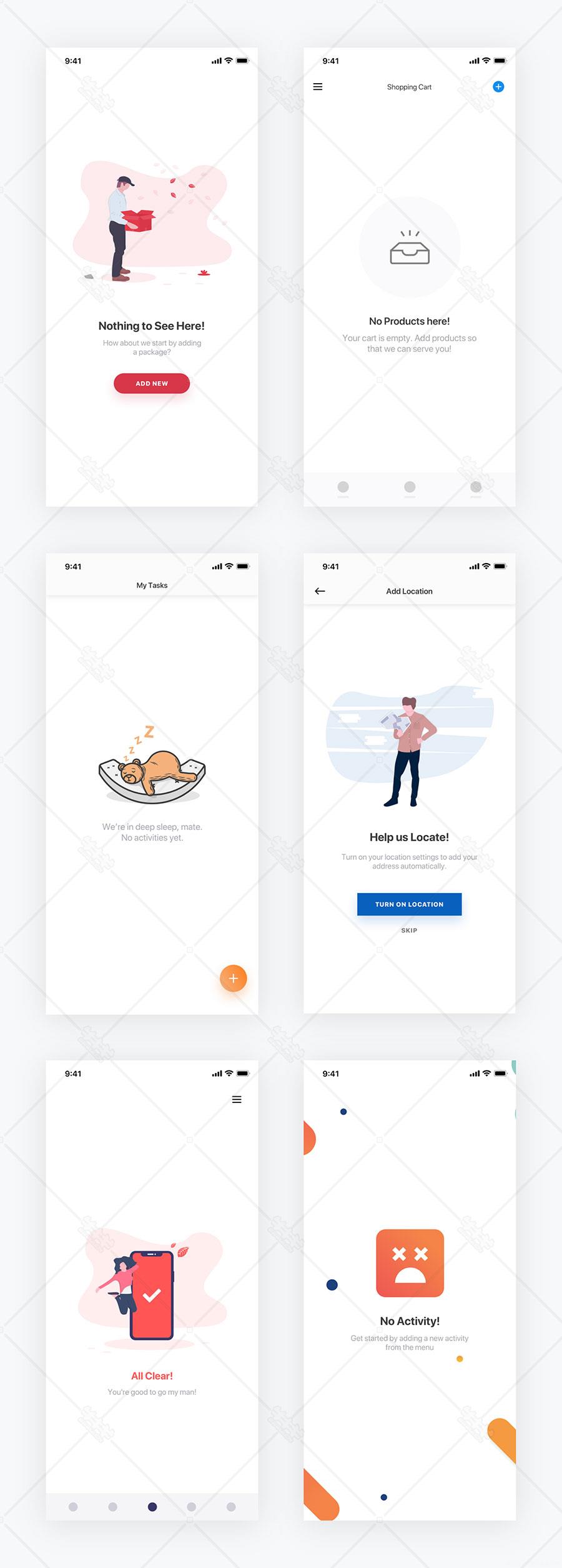 sketch 插画 空 无 没有 状态 app ui设计 合集 源文件 下载 打开 箱子 盒子 界面 休息 睡觉 清空