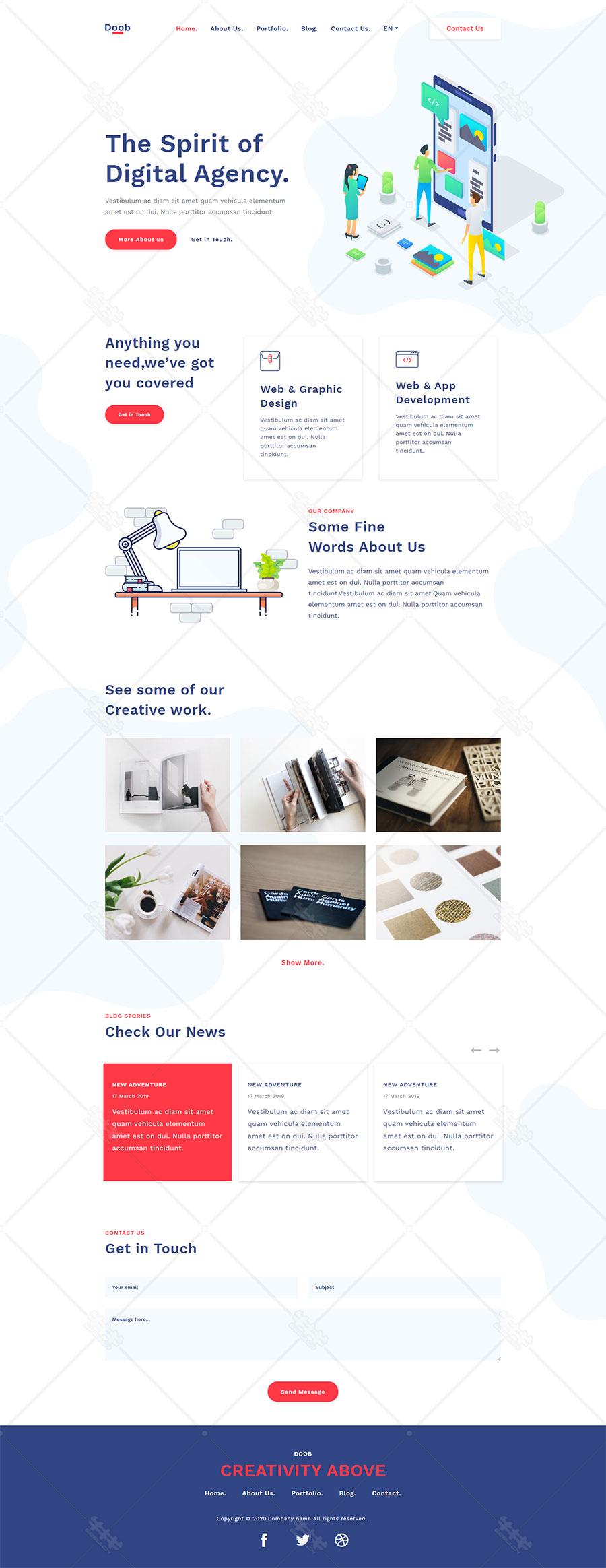响应式 bootstrap 网页 html5 模板 下载 2.5d 插画 创意 时尚 蓝色 红色 简洁 大气 it 互联网 公司 官网 首页