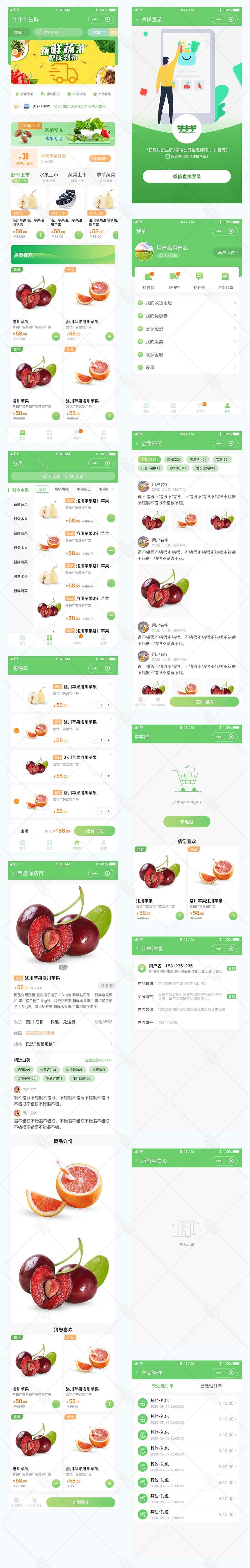 绿色 清新 小程序 app 生鲜 素材 水果 清爽 环保 电商 商城 整套 ui设计 psd 源文件 下载