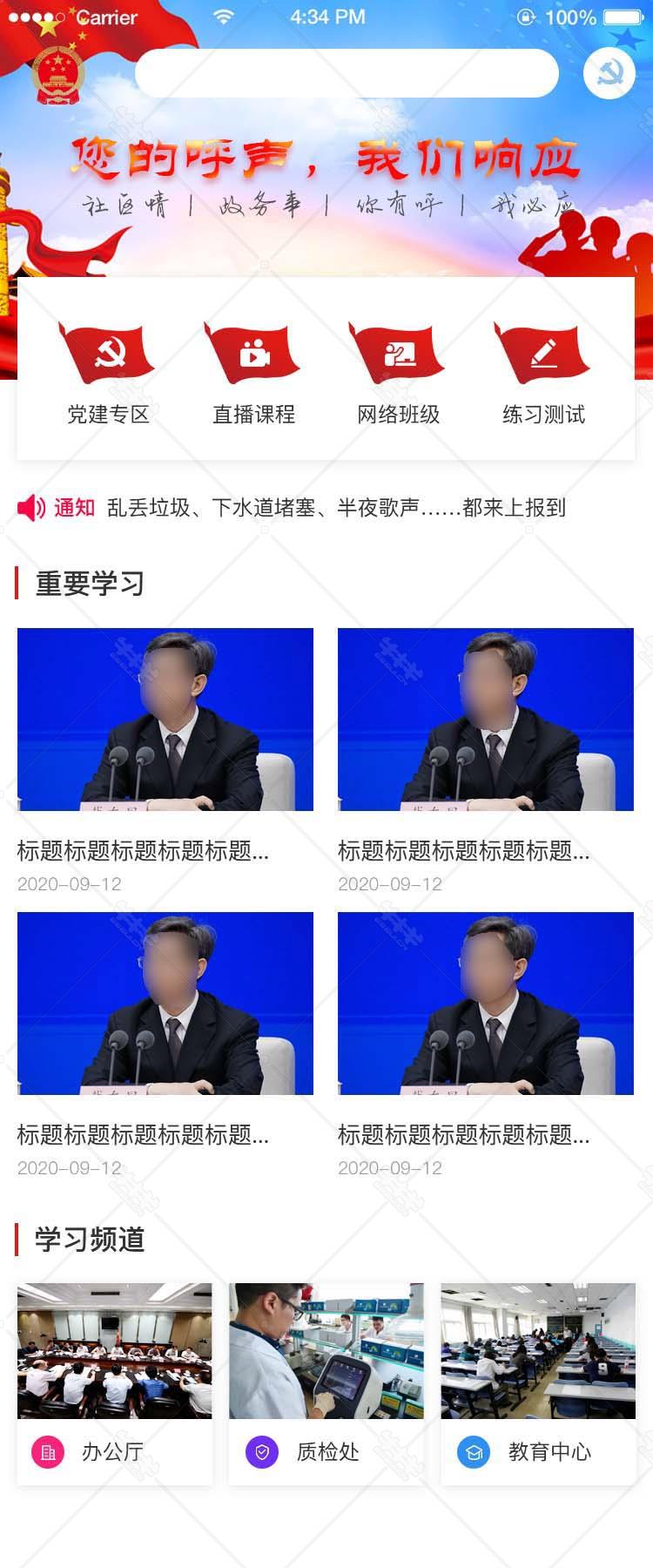 y634-党政政府体制机关事业单位在线办理受理电子政务app红色大气ui设计psd模板源文件下载公告重要学习频道威严