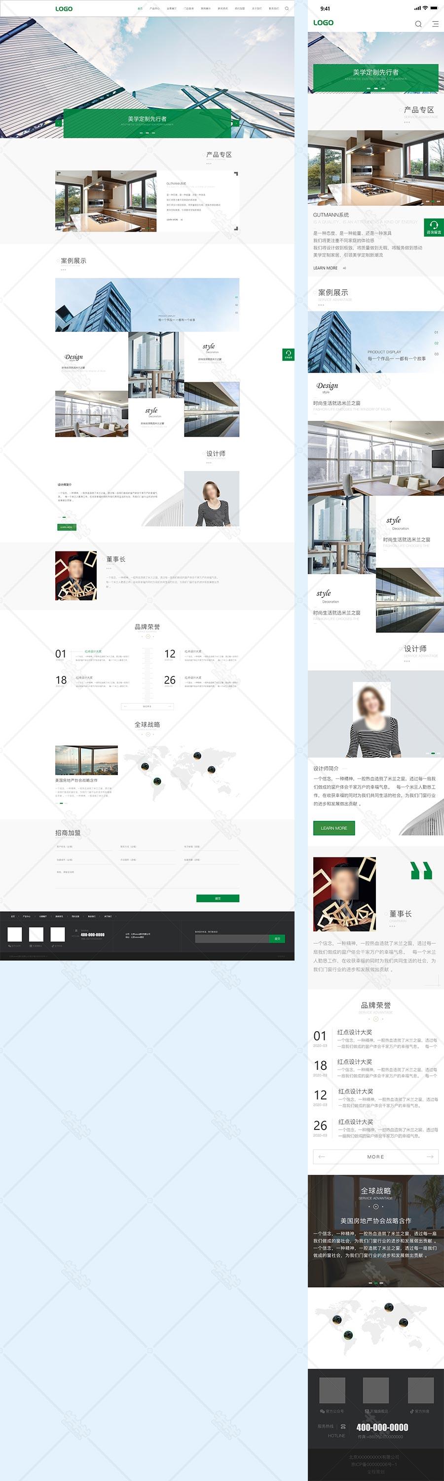 xd 高端 大气 创意 设计 公司 企业 集团 官网 响应式 宽屏 首页 ui设计 psd 模板 源文件 下载 房地产 租赁 中介 平台 商务 关于 我们 团队 展示 绿色 极简