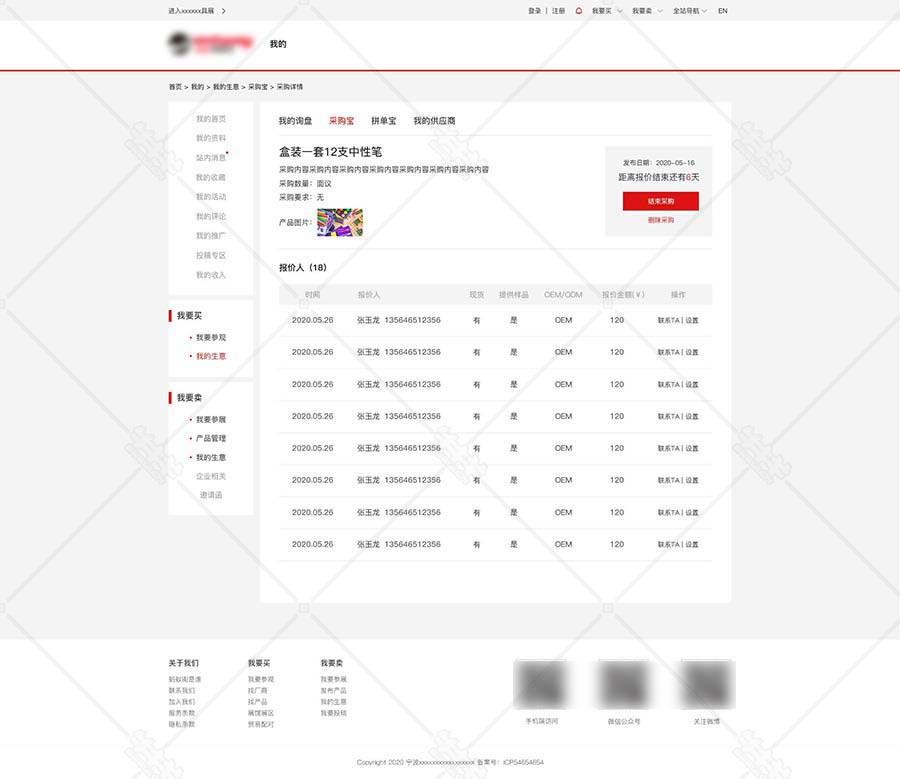 首页>网页ui>w642-会员中心我要买我的生意采购详情ui设计psd模板源文件下载红色