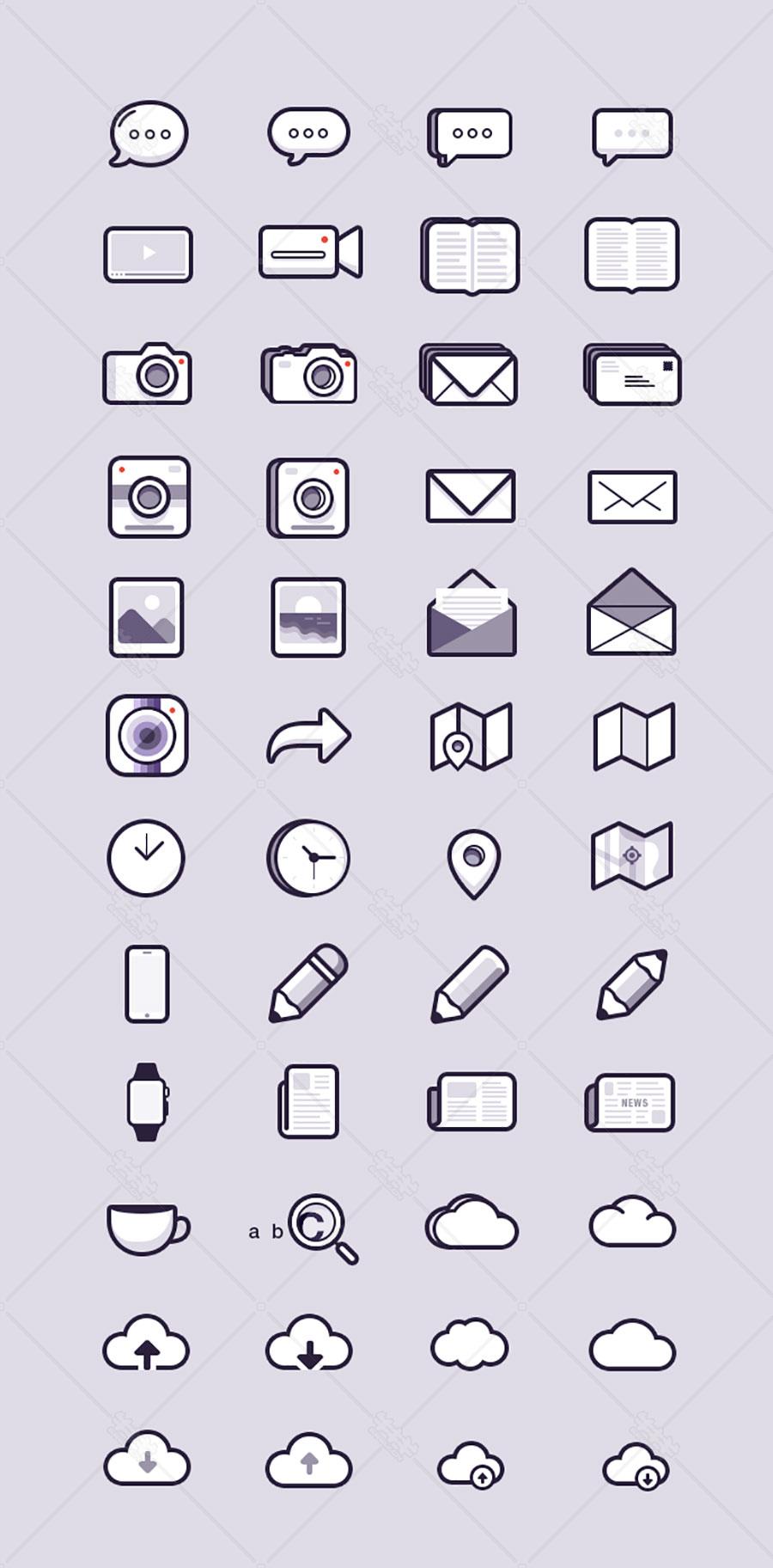 首页>图标插画>i308-个性可爱圆润图标icon邮件psd源文件下载消息回复云查询发送时间定位位置相机摄像机图片记事本