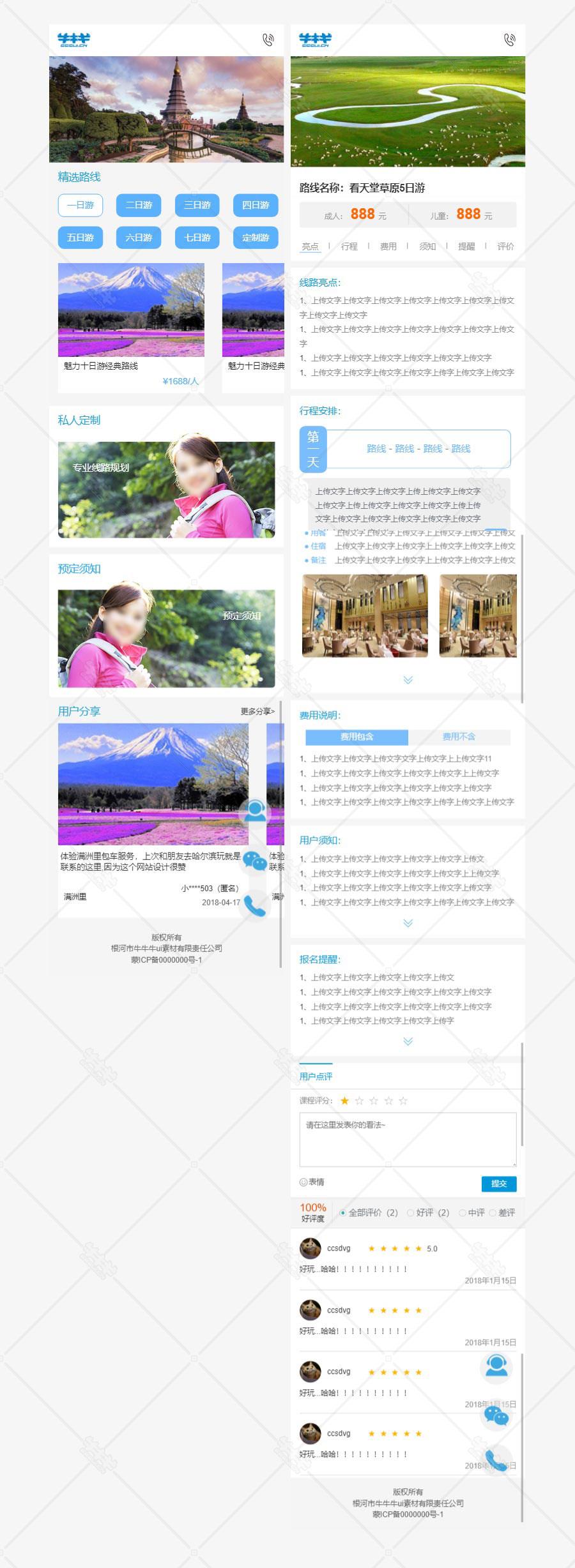 h5 蓝色 旅行 旅游 介绍 首页 列表页 详情页 html5 模板 代码 下载