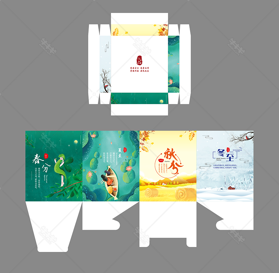 ai 礼盒 农业 金黄色 橙色 收割 手提 纸盒 包装 设计 模板 源文件 下载 健康 养生 创意 插画 一年 四季
