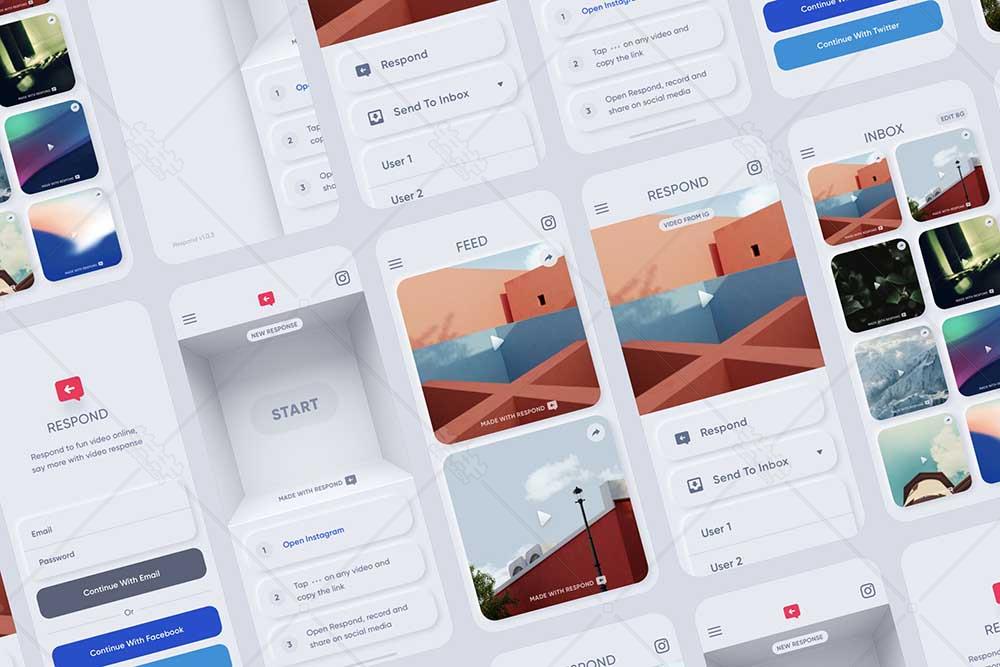 sketch 新拟物 app 界面 ui设计 模板 源文件 下载 浅色系 登录页 详情页 列表页