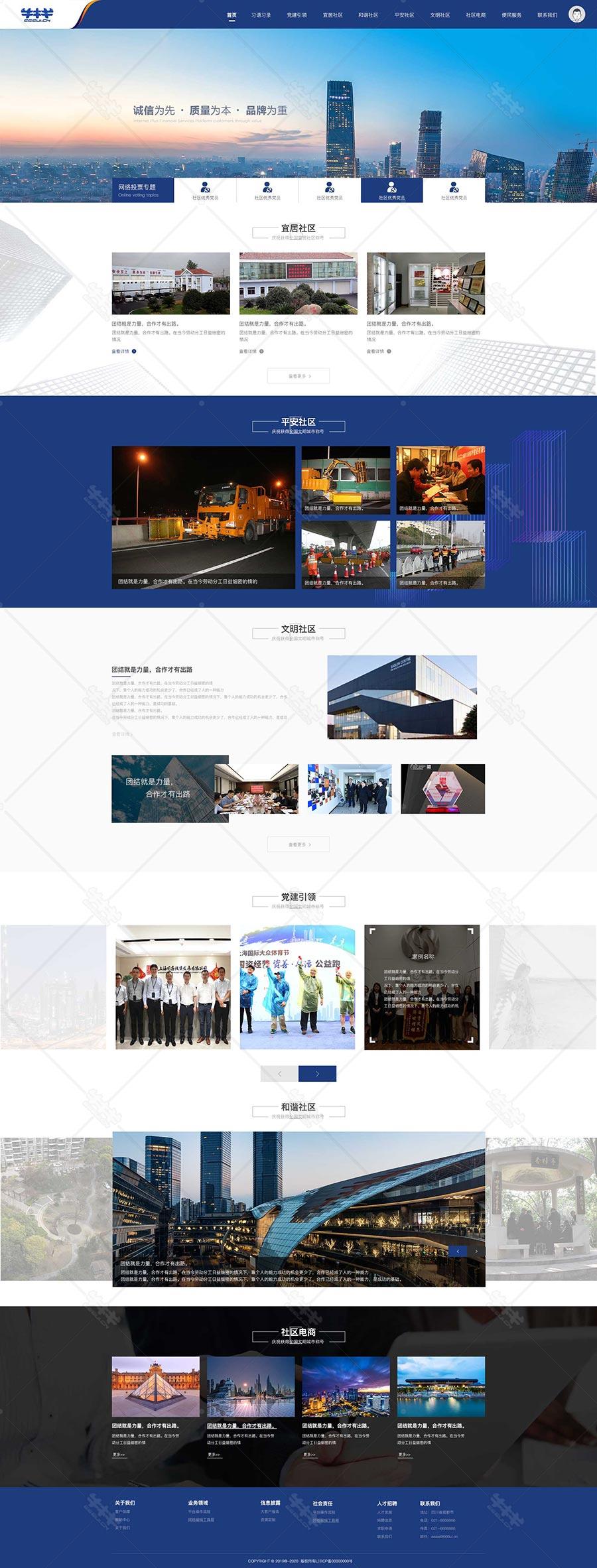 首页>网页ui>w975-创意头部社区部门公司企业官网落地页首页ui设计psd模板源文件下载蓝色