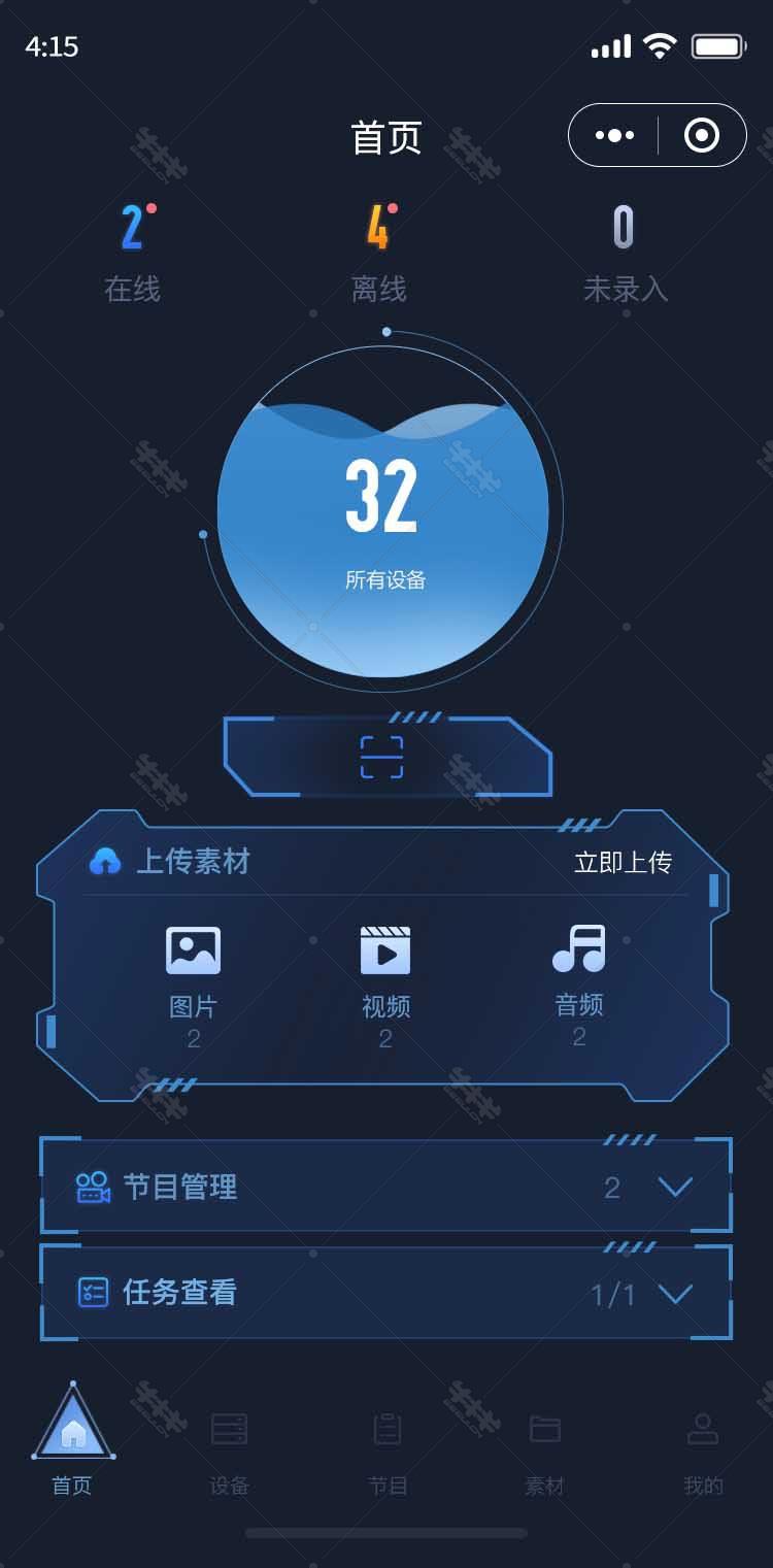 蓝色 暗色系 科技感 酷炫 科幻 家居 智能 首页 设备 控制 信息 查看 小程序 app 手机 移动端 ui设计 psd 模板 源文件 下载