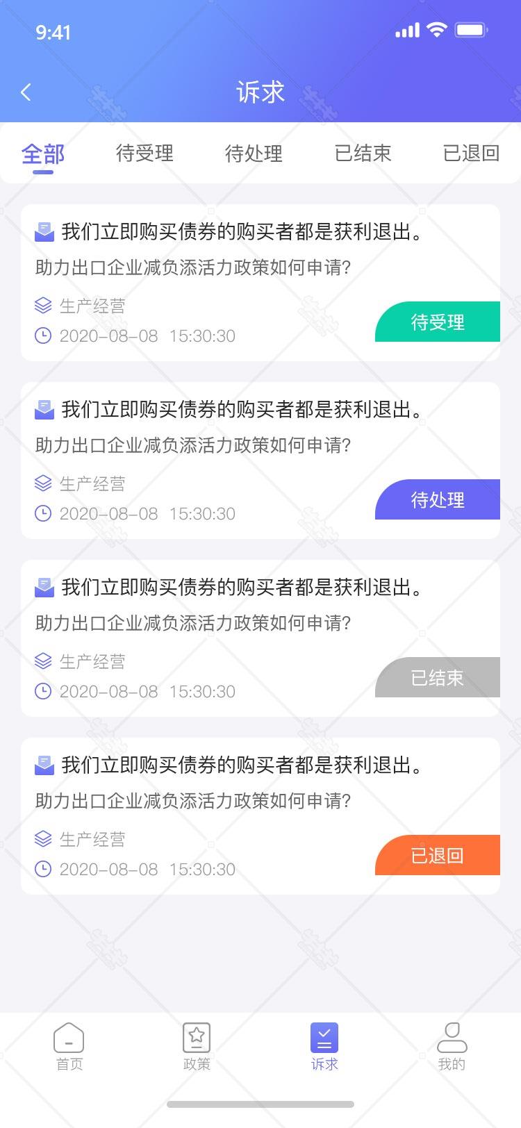 诉求 列表页 政企 事业 单位 app部门 ui设计 模板 源文件 下载 简洁 大气 紫色