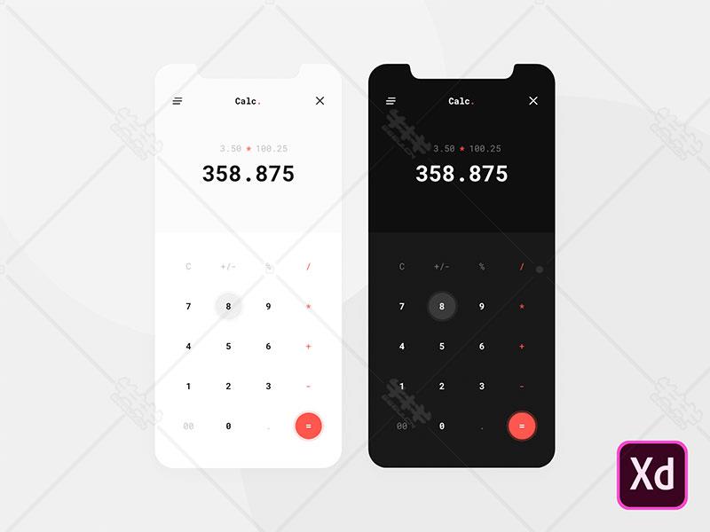 xd 简洁 黑白色 计算器 移动端 APP ui设计 源文件 下载