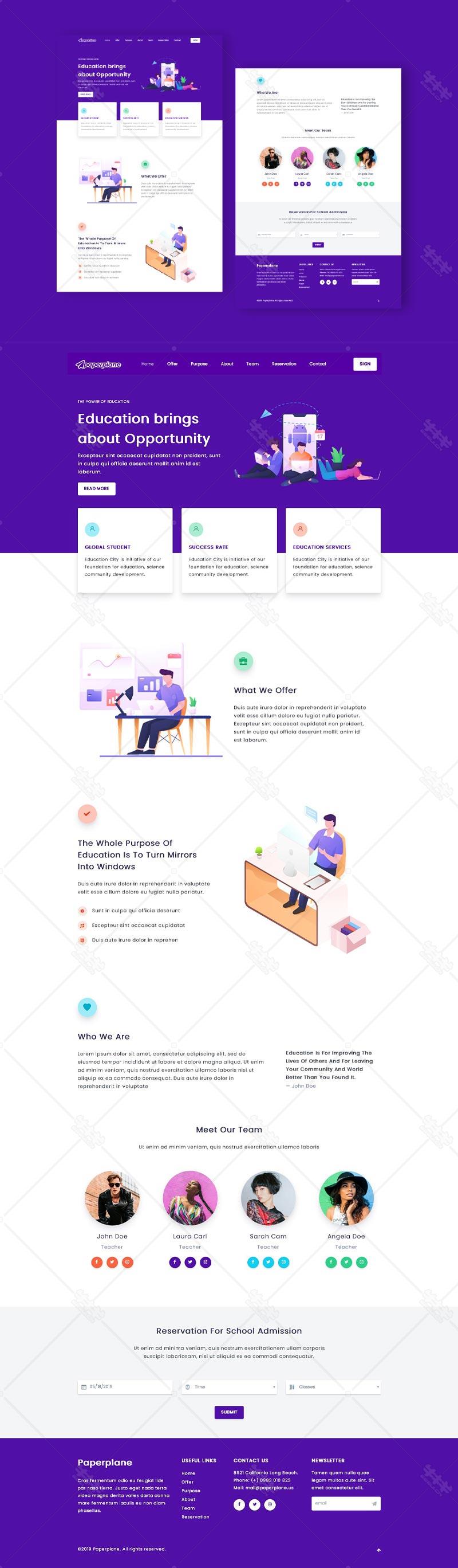 工作 创意 插画 绘制 响应式 自适应 教育 网站 首页 官网 html5 紫色 模板 代码 下载