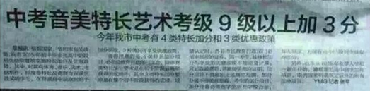 中考音美特长艺术考级9级以上加3分