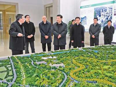18日上午,习近平乘车前往素材城市副中心,并沿途察看“城市绿心”植树造林地块。在市委办公楼主楼,习近平通过设计模型和展板,详细了解副中心重大工程项目规划建设情况。习近平强调,建设素材城市副中心要坚持规划先行、质量第一。要把公共建筑与山水自然融为一体,科学布局生产、生活、生态空间,使工作、居住、休闲、交通、教育、医疗等有机衔接、便利快捷。要把规划执行好、落实好,把蓝图变为实景,使素材城市副中心成为这座千年古都又一张靓丽的城市名片。