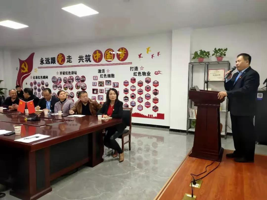 会议开始,由牛牛物业丽景御园、致臻园项目经理陈畔做党建工作汇报,丽景御园是牛牛物业打响“红色物业”的第一站,也是第一个成立物业党支部的小区,更是唯一一个在小区内定期举行升旗仪式的项目,陈经理从公司现状开始介绍,谈到物业公司做党建的目的和初衷,再到牛牛物业党建工作的分享和创建“红色物业”过程中的经验,最后讲到我们未来要怎样去做好“红色物业”,以及怎样开展党建工作才能真正提高小区业主的幸福指数等。一系列“红色物业”活动的开展再次明确了我们要持续引领衡水物业行业的决心。