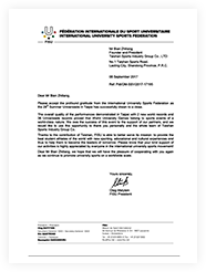 国际体联主席渡边守城及组委会主席阿里发来感谢信