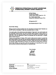 台北大运会大体联主席感谢信