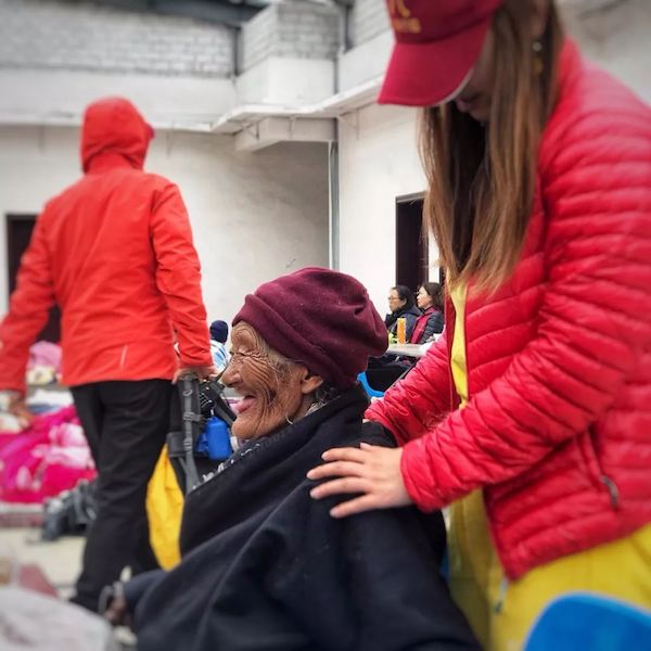 看到我们克服着高反,为老人们忙前忙后的样子,老人们坐在一旁默默擦去眼角的泪水,既心疼又感动,在他们眼中,我们看到了在都市中久违的亲切和真情……