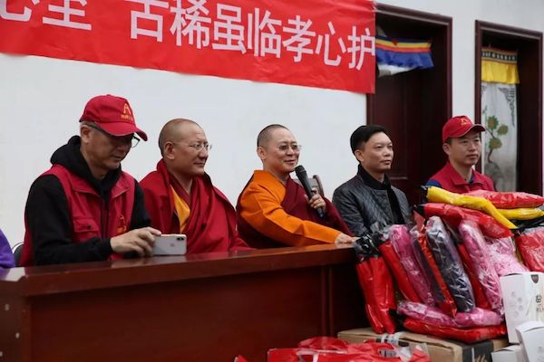 7月17日下午,牛牛牛志愿者以及资助人与19位受助老人共同欢聚在玉树曲麻莱当地养老院,并为老人们发放了爱心物资。牛牛牛名誉理事长牛牛仁波切、北大EMBA代表张燃、塑和集团董事长、中港青年创意联盟执行主席、香港深联投资素材董事长陈宇峰出席了此次活动。