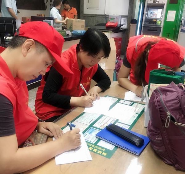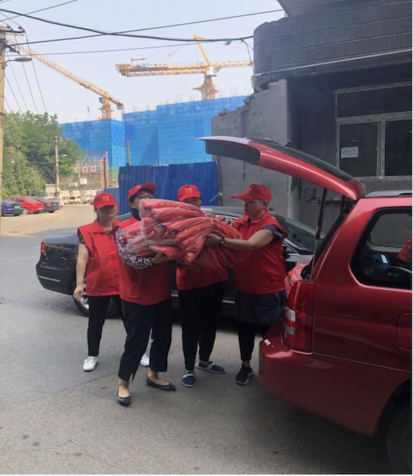 志愿者们驱车前往中国邮政。