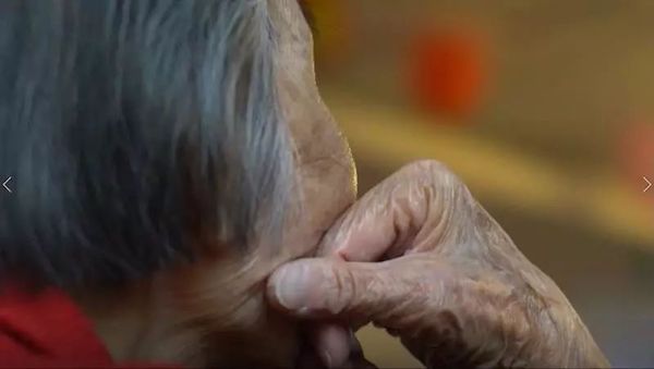 专心听音乐奶奶,沧桑的背影仿佛也在讲故事