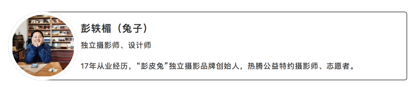 作为职业摄影师,彭轶楣在承接商业摄影的同时,也十分热心公益。她曾于今年2-3月份,驱车12300公里,在15个省份、92个乡村采风,把镜头对准中国农村的留守老人和儿童、普通劳动者,希望通过记录他们的生活点滴,让这些默默无闻的人更多地走进公众的视野。