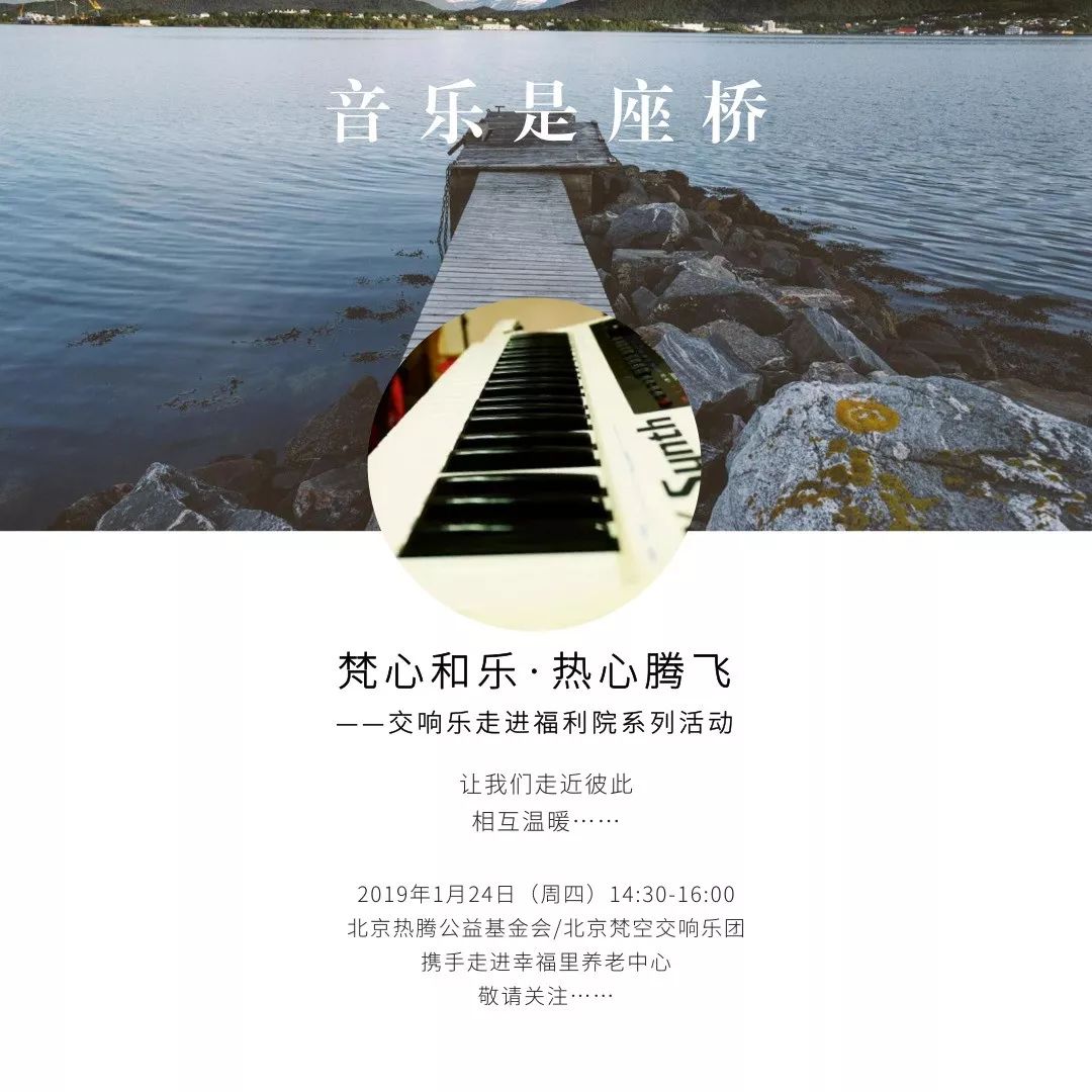 积累了信心和经验,我们更希望能继续走下去,给更多社区福利院的老人和儿童带来欢喜与希望。2019年伊始,我们决定把交响乐走进福利院办成系列活动,并有了响亮的新名字——“梵心和乐 热心腾飞”,希望在众人的热心相助之下,美妙动人的乐声能在每一个社区福利院响起。