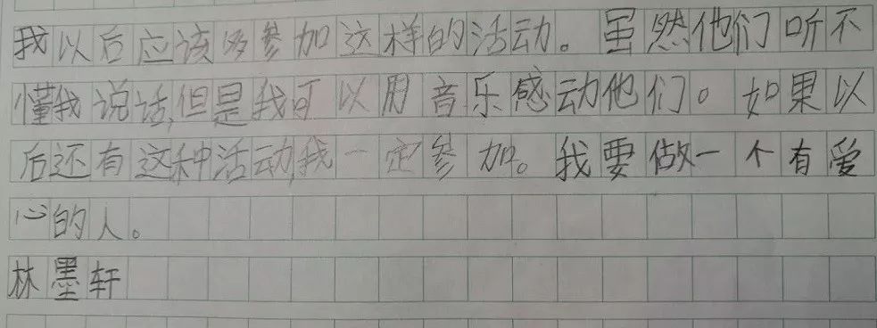 “虽然他们听不懂我说话,但我可以用音乐感动他们。”——林墨轩(10岁)