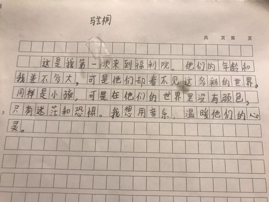 “当我们真正走进去的时候,发现他们和我们其实差不多。他们也有喜怒哀乐,也喜欢音乐。虽然他们和我们之间有一条深深的沟壑,但我相信音乐会架起一座桥,让我们彼此相遇。”——黄楠嘉(11岁)