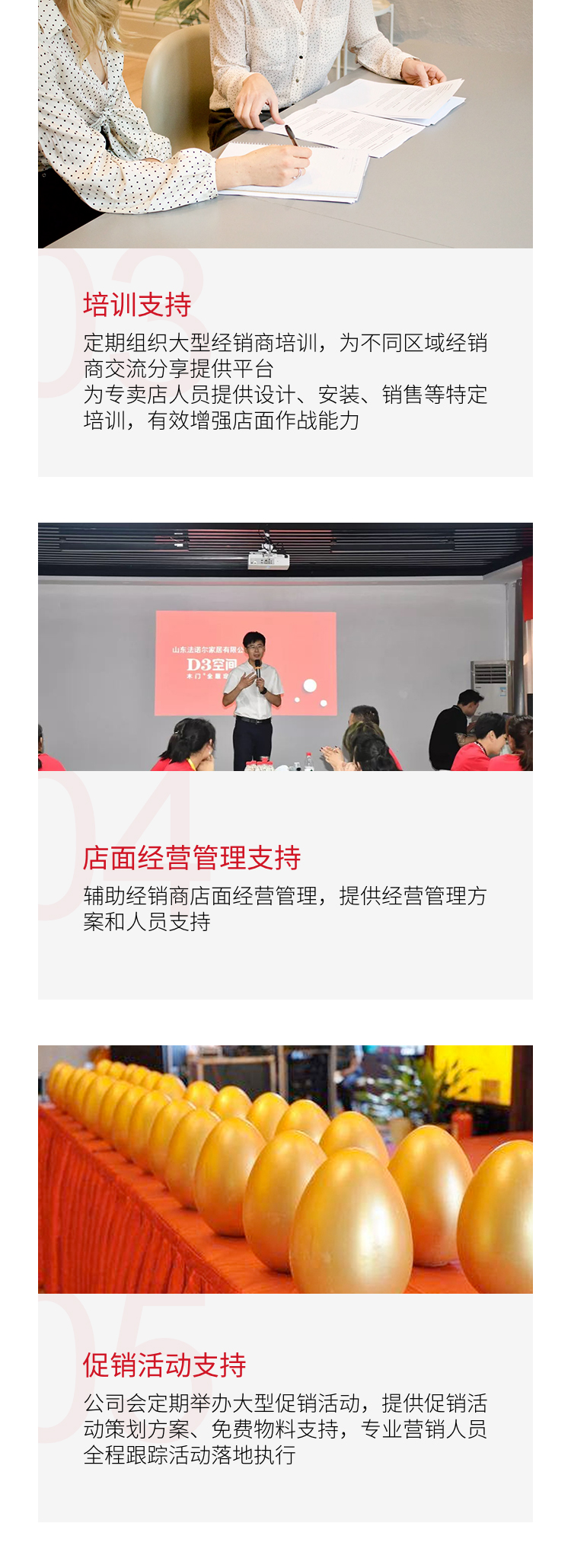 为专卖店人员提供设计、安装、销售等特定培训,有效增强店面作战能力
