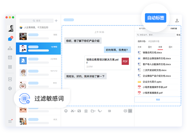 文字 文件 图文 图片等各种形式的内容可以一键发给客户